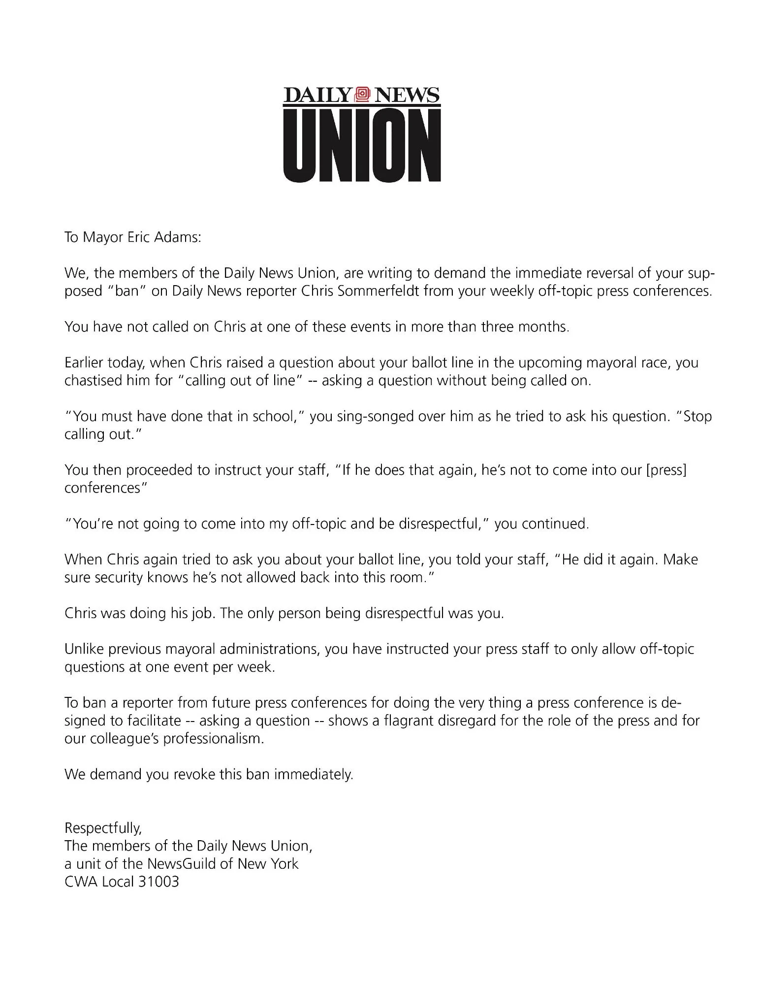 NewsGuild of NY 6/17/25 NewsGuild of NY 6/17/25 Daily News Union to Mayor Adams: let our reporter do his job Read More